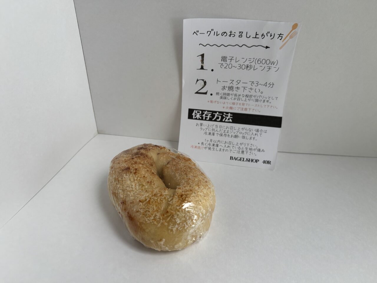 購入時に、ベーグルの食べ方や保存方法についての案内を同梱してくれていました。当日中に食べられなかった場合には冷凍庫での保存を推奨されています。