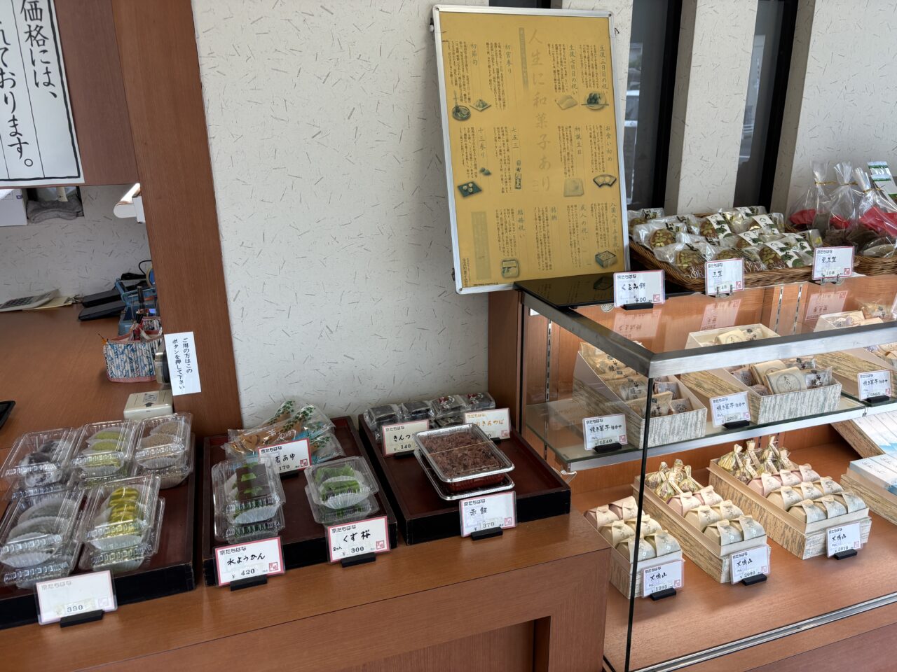 こぢんまりとした店内に、多数の商品が所狭しと並んでいました。和菓子だけでなく、洋菓子のぢラインナップも。手土産用の焼き菓子のセットなどもあり、様々な用途に適した商品が購入できます。