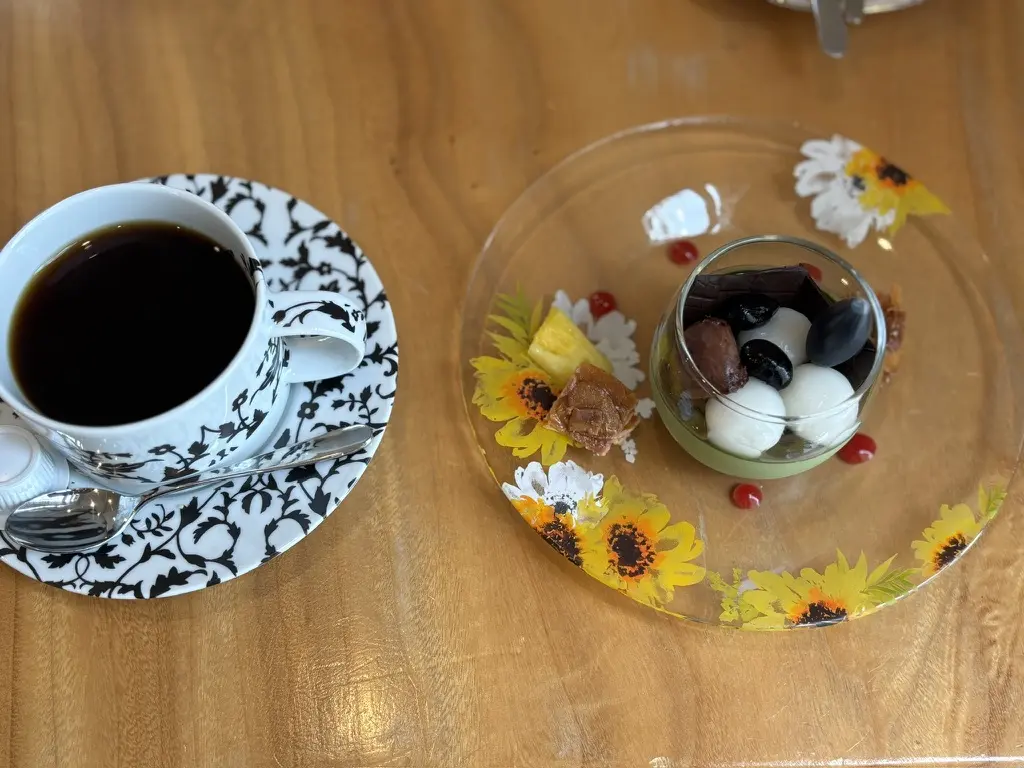 夏季限定商品の宇治抹茶とホットコーヒー