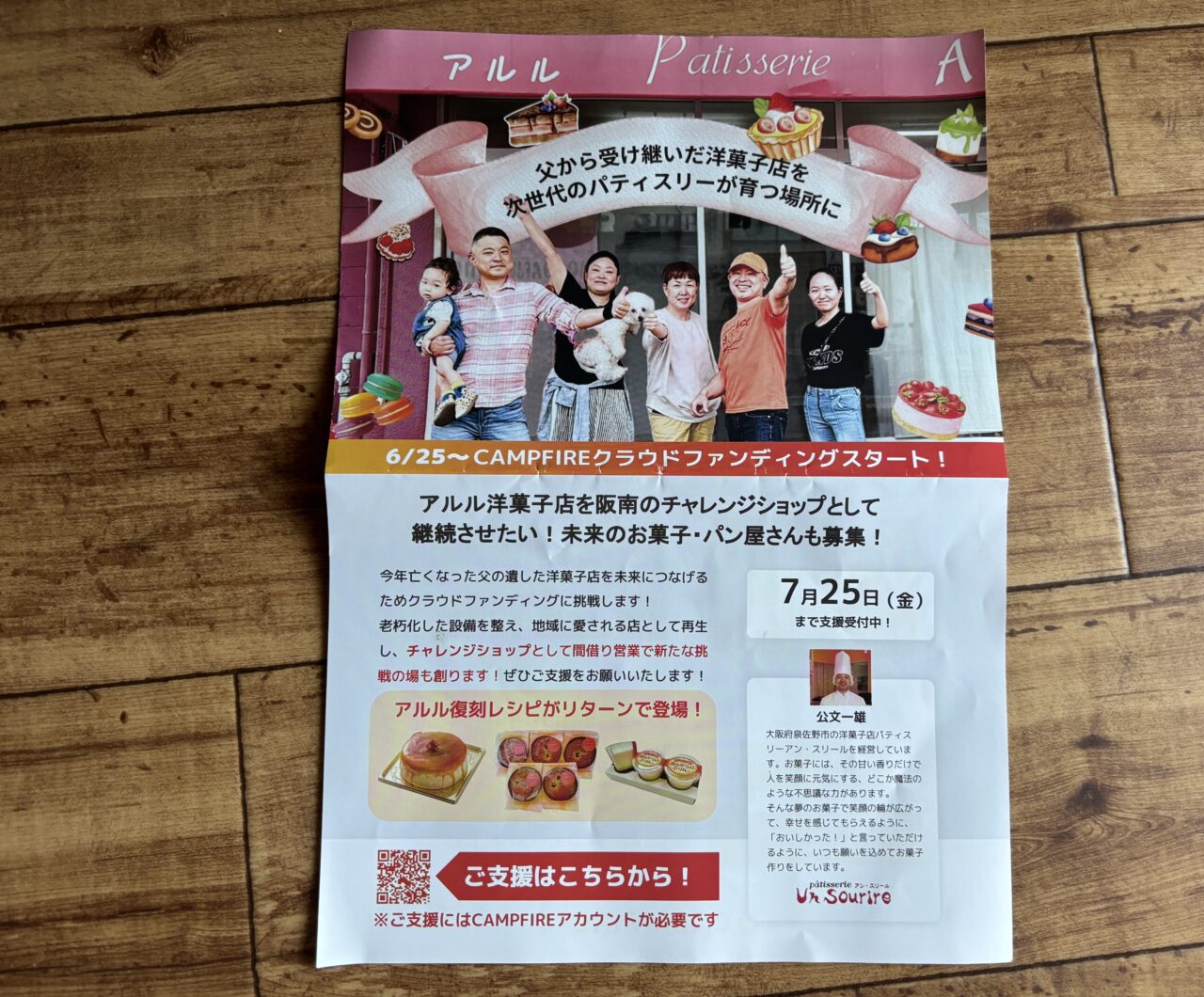 【阪南市】臨時休業中の「アルル洋菓子店」は、7月25日までクラウドファンディングに挑戦しています。