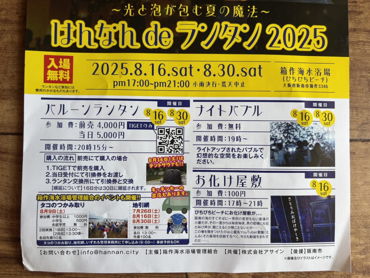 阪南市箱作にある箱作海水浴場(ぴちぴちビーチ)で、「はんなんdeランタン2025~光と泡が包む夏の魔法~」が2025年8月に開催されるようです!こちらのイベントは、今回が初開催で、“人と人を、そして未来と今をやさしく灯りでつなぐ”ことをテーマに、阪南市の海辺に灯りをともすイベントとなっているようです。