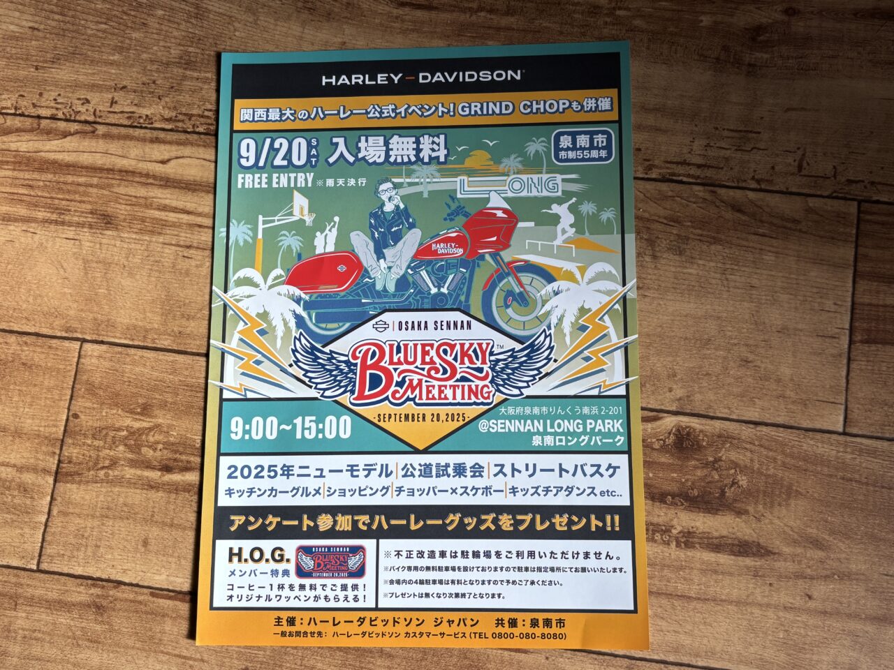 また、9月20日(土)には、ハーレーダビッドソンの公式イベント「BLUESKY MEETING」も開催予定。こちらは、ハーレーオーナーのみならず、ライダーの方もライダーでない方もどなたでも大歓迎のカルチャーイベントだそうです(入場料無料)。