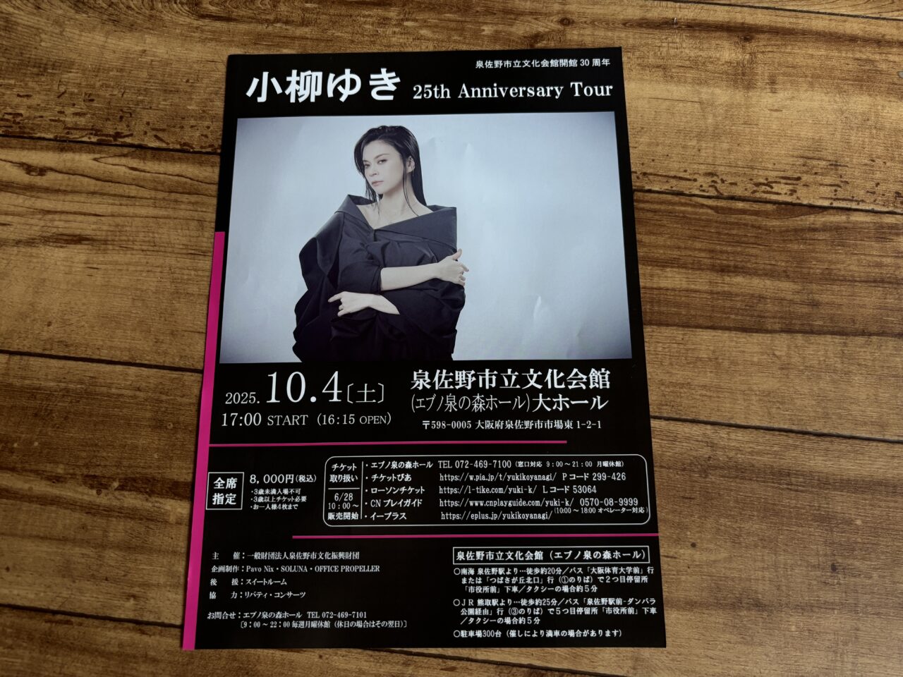 案内によると、小柳ゆきさんの25th AnniversaryLiveTour「Orchestra」は、2025年10月4日(土)に開催されるそうです。会場は泉佐野市立文化会館(エブノ泉の森ホール)大ホールで、開演は17:00の予定です。