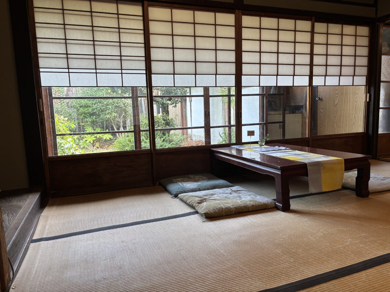 店内へ入ると、数組のお客さんが食事を楽しんでいらっしゃいました。築200年の古民家のため、靴を脱いであがります。座席は、机と椅子の席と座卓の席とありました。どちらの席も空いていたので好きな方を選ぶことができました。