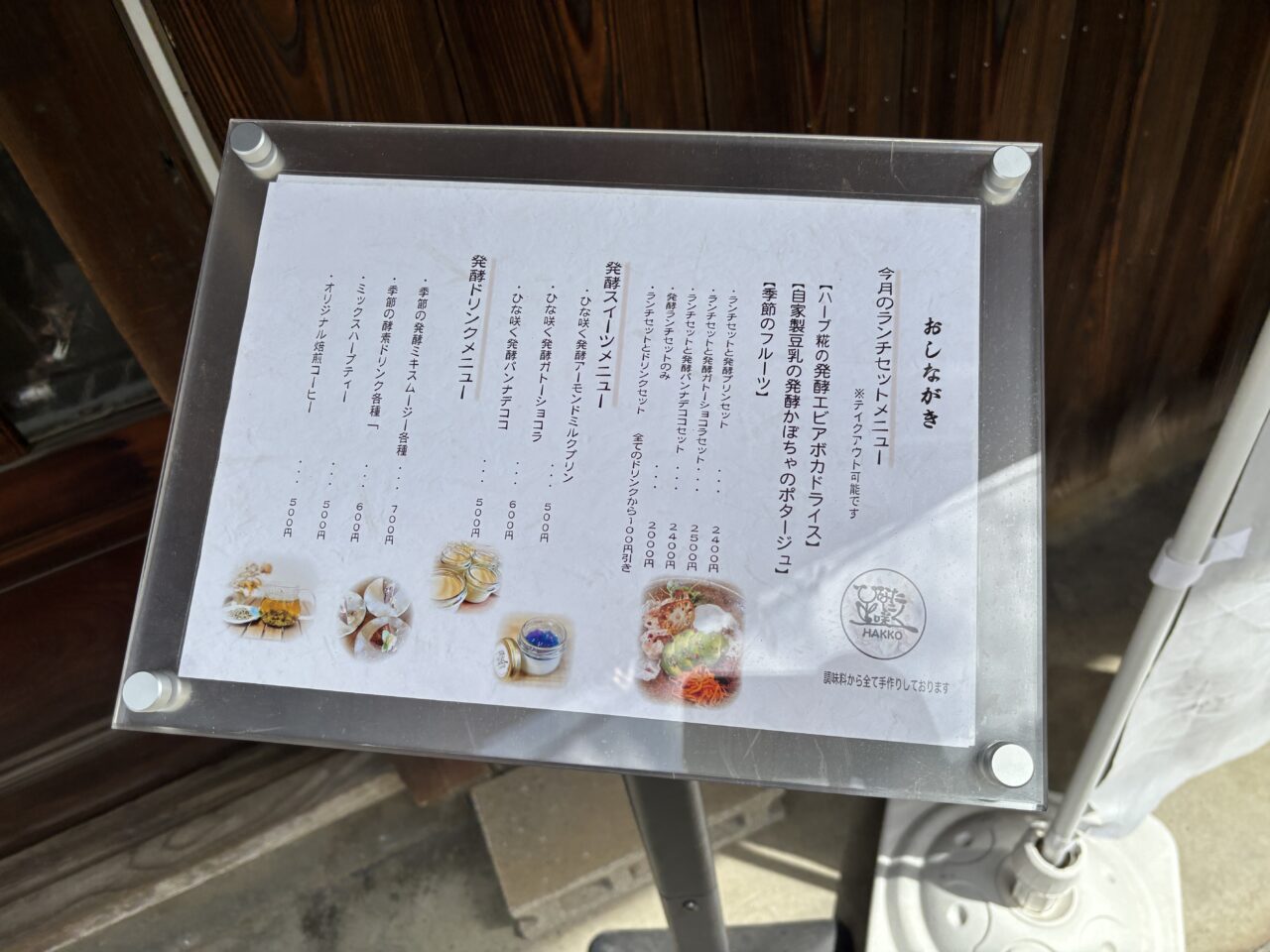 お店では発酵無添加ランチや発酵スイーツ、発酵ドリンクなどが楽しめます。お店の営業時間は、11時〜14時(L.O13時)。予約優先制となっており、予約はInstagramのDMから受け付けておられます。