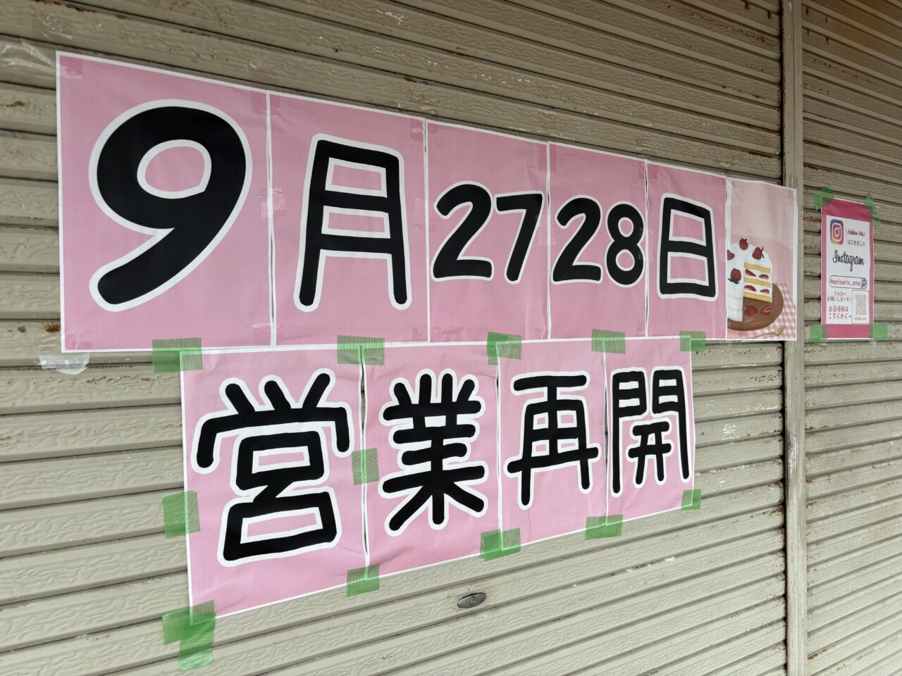 お店の前を通ると、9月の27日(土)と28日(日)に営業再開予定と案内が掲示されていました。また、お店の公式Instagramによると、OPENは両日ともに12:00〜の予定となっています。