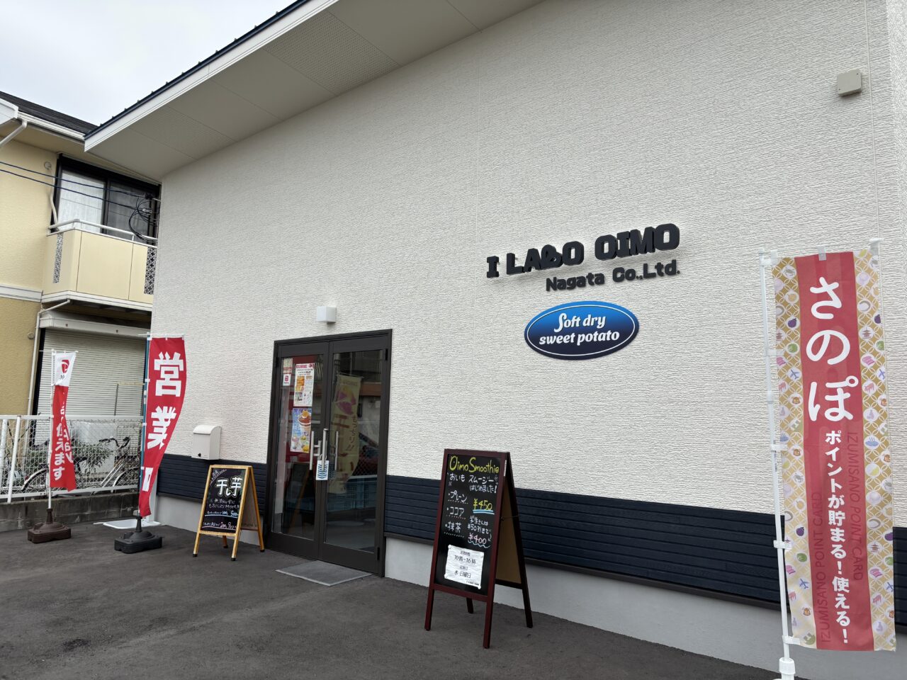 泉佐野市市場西に2025年4月にOPENした干し芋工場「I LABO OIMO」。こちらでは、しっとりもっちり食感が楽しめる「干し芋」や「おいもスムージー」が購入できます。