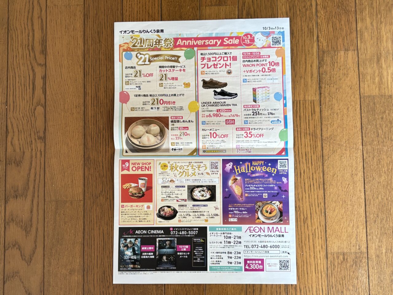 イオンモールりんくう泉南21周年セールのチラシ(セール詳細)