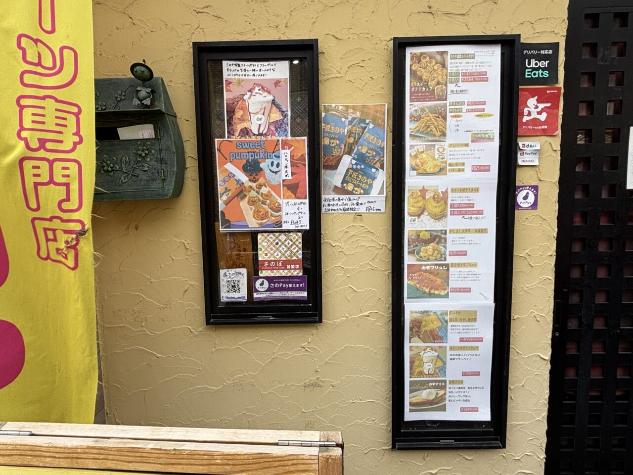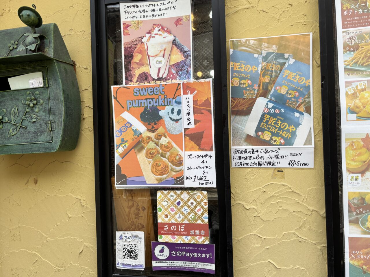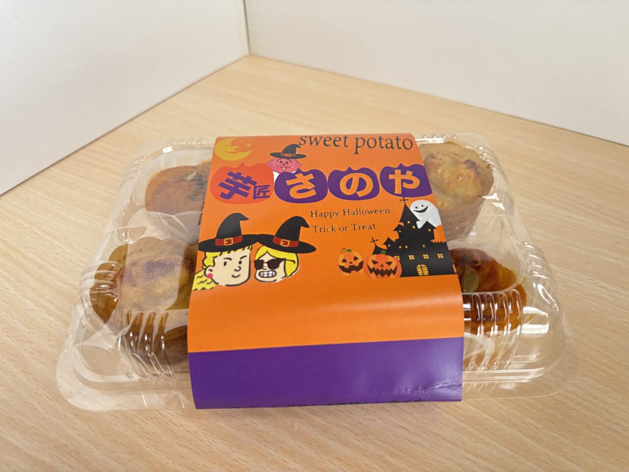 お店に伺った2025年10月初めには、「ハロウィン限定セット」も販売されていました。人気の「スイートポテト」と「スイートパンプキン」が両方楽しめるセットになっており、案内によると、「プレーンスイートポテト」が4つと「スイートパンプキン」が2つ入っているそうです。