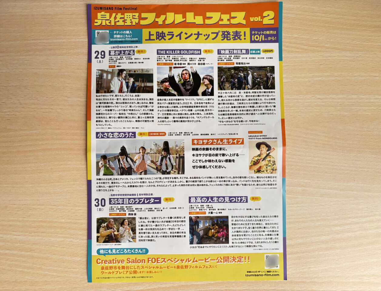 【泉佐野市】好評につき、「泉佐野フィルムフェス vol.2」の開催が決定!前売りチケットも発売中です。