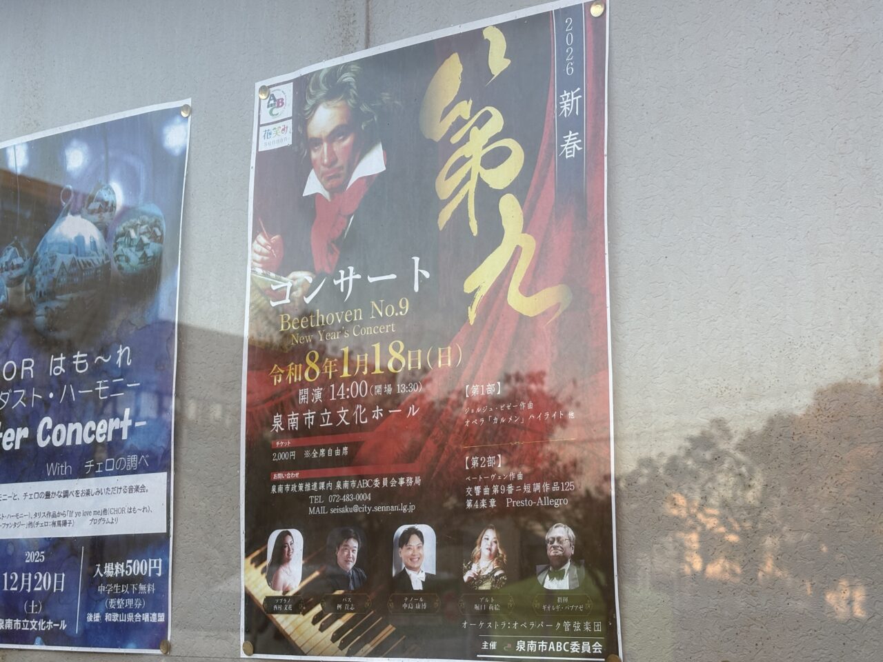 2026年1月18日(日)には、「2026新春 第九コンサート」が行われる予定です。こちらは、有料イベント(チケット 2,000円)となっていて、文化ホール事務所にて前売り券を販売中とのこと。開演は、14:00(開場 13:30)で、全席自由席制だそうです。気になるイベントがあれば、ぜひ足を運んでみてください。