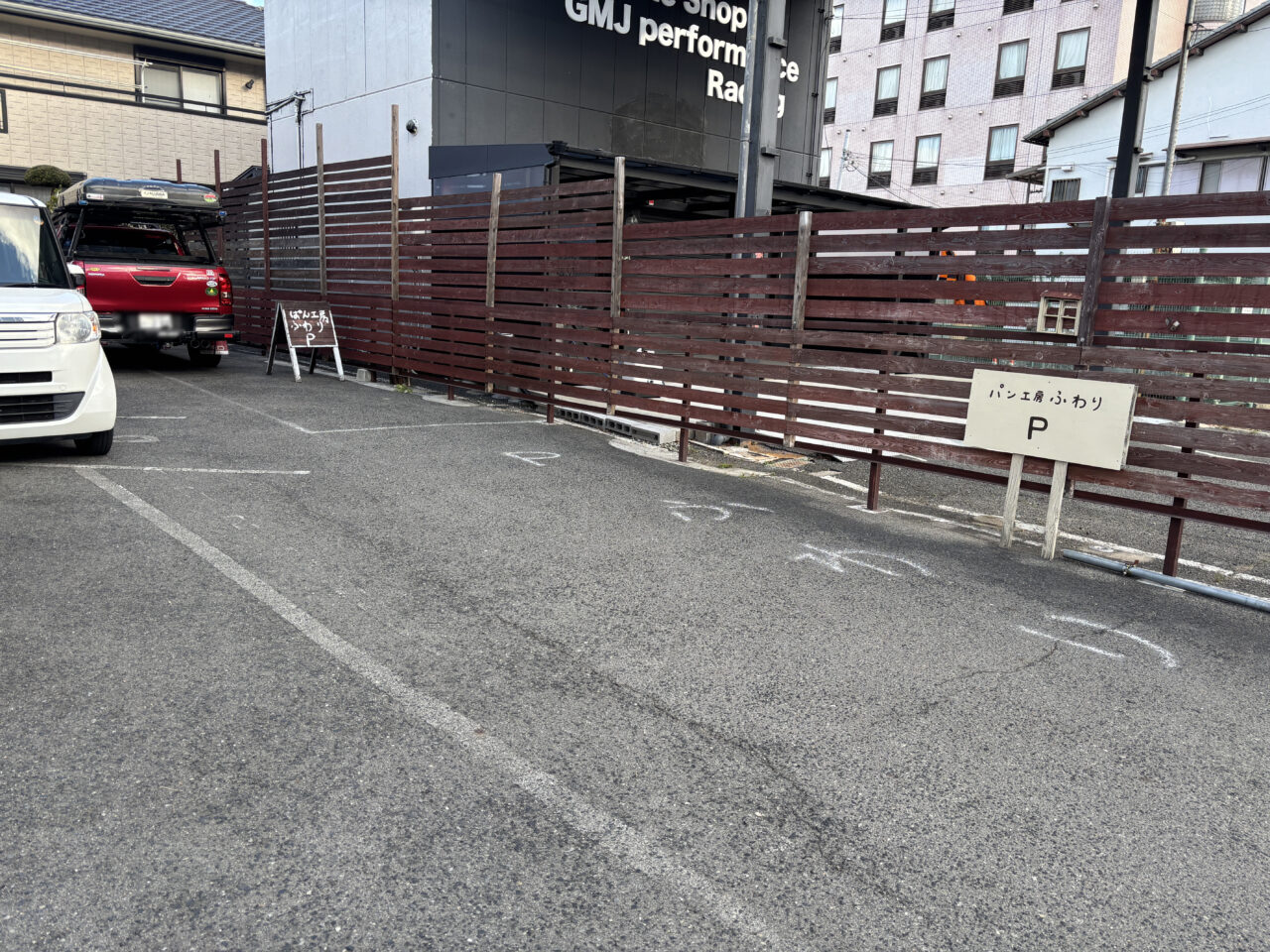 駐車場も完備。店の入り口前と横に数台ずつ駐車できるスペースが設けられています。