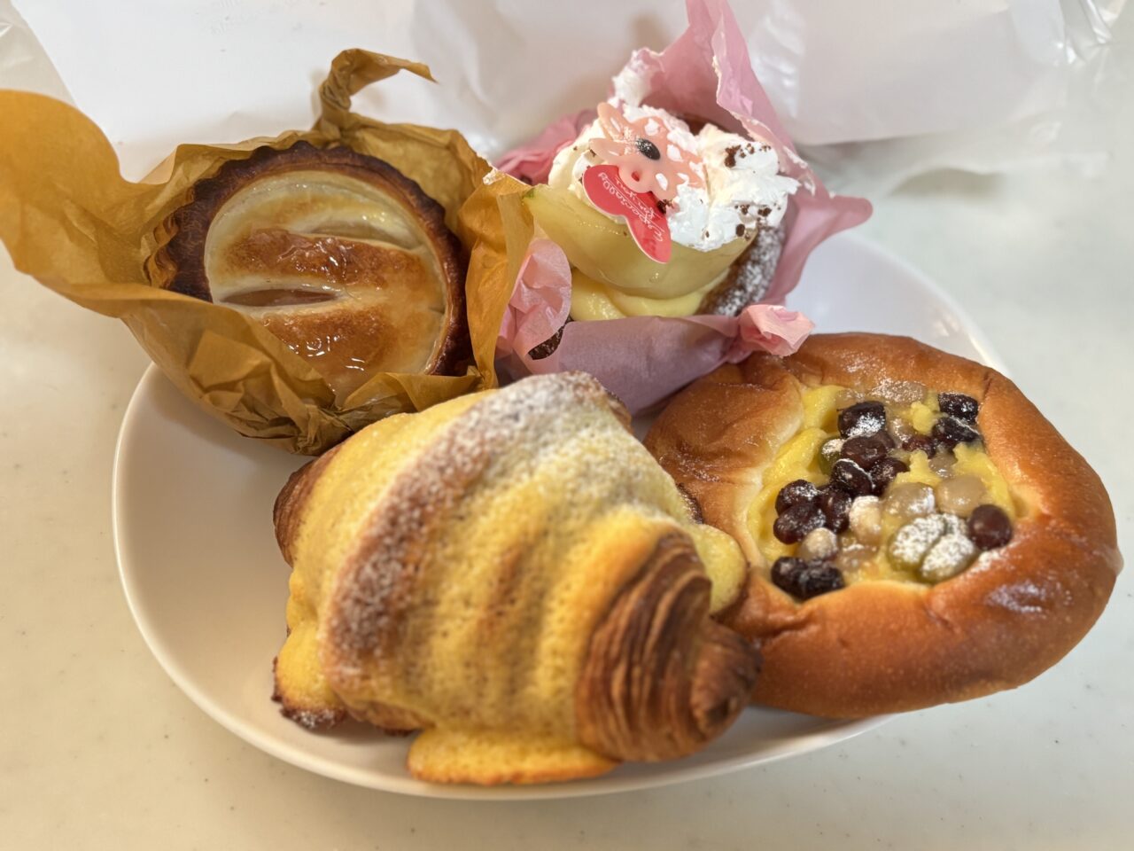 伺った際、売り切れてしまっているパンがいくつかありましたが、惣菜パンやデニッシュなどのスイーツパン、ハード系など、販売している種類は豊富でした。また、レジを待っている間に焼きあがったパンが陳列されていたので、タイミングが良ければ焼きたてのパンを購入できることもあるようです。