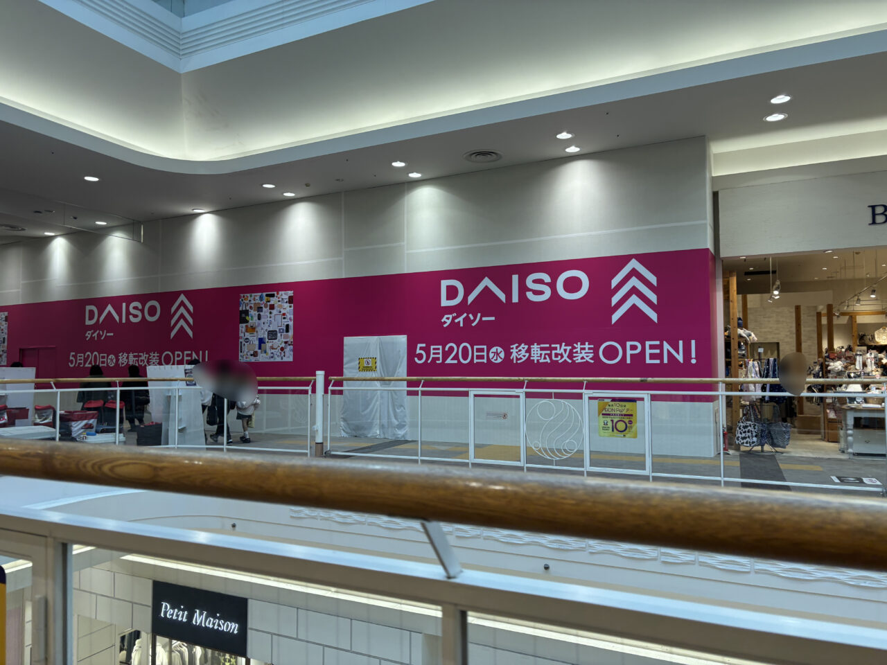 2F・無印良品跡に、ダイソーが移転オープン。こちらは5月20日に移転改装OPENとのこと。