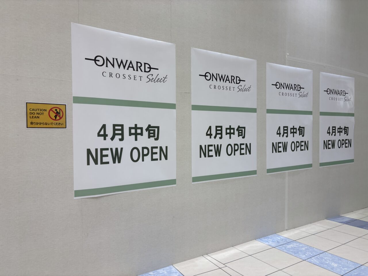 「ONWARD CROSSET SELECT」は1F「久世福商店」横にOPEN。こちらも掲示には4月中旬とありますが、公式サイトによると、4月17日にオープン予定だそうです。