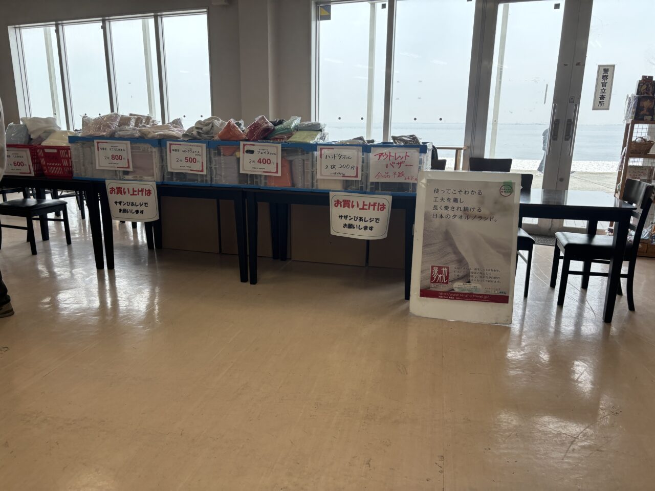 泉南市りんくう南浜にあるサザンぴあ。こちらでは期間限定で「上野タオルアウトレットバザー」が行われています。